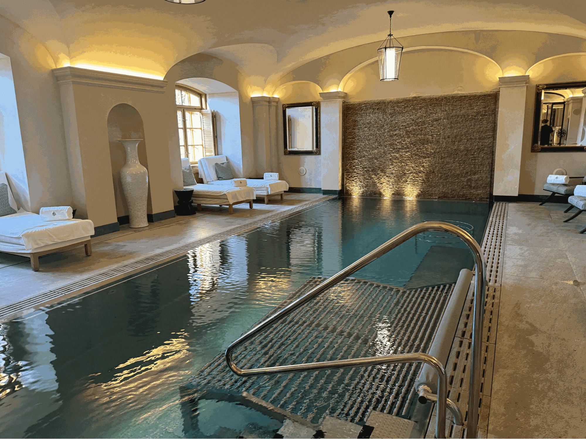 The vitality pool felt cozy, with an environment blending luxury with modern sophistication. The arched slender alcoves house poolside beds meant for lounging. If you want to relax inside the pool, you’ll find a wide hydrotherapy bed made of stainless steel. Unfortunately, there aren’t any hot tubs, though guests can still relax inside the sauna or steam room after the pool.
